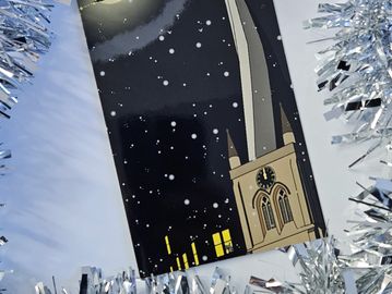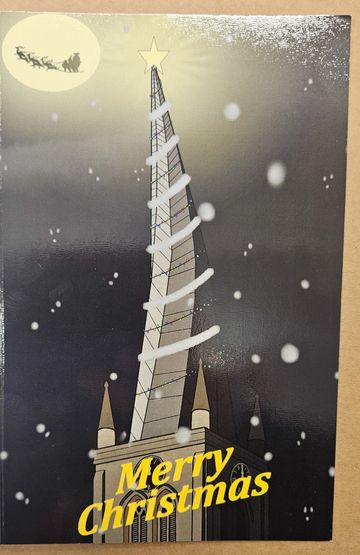 Our 2024 Studio Christmas Card depicting our neighbours 'The famous Crooked Spire' especially designed by Mitchell Ellis' for our Studio Collection.