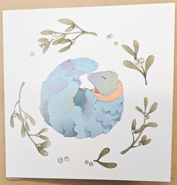 Our newest Studio Character is 'Friday' A Pangolin found in a box of parts ordered by Inky. This sweet card captures the gentleness of this amazing creature. Designed especially for our Studio Christmas Collection by Intern Aimee Conway from concept designs by Jon Boam & Jules Jeffers