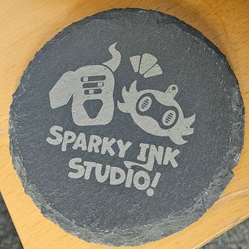 Our gorgeous slate coasters will save your table or gaming desk from getting stained! Beautifully engraved with our Team Sparky Logo.