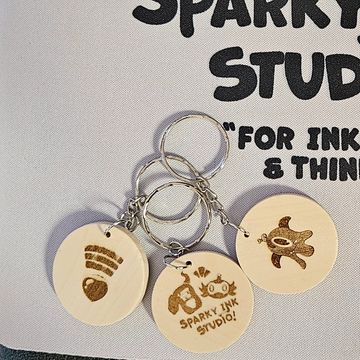 High Quality engraving on light wood of Pink Alien, Sparky and our Team Sparky logo with a metal key-ring. Very collectable and brilliant stocking fillers!